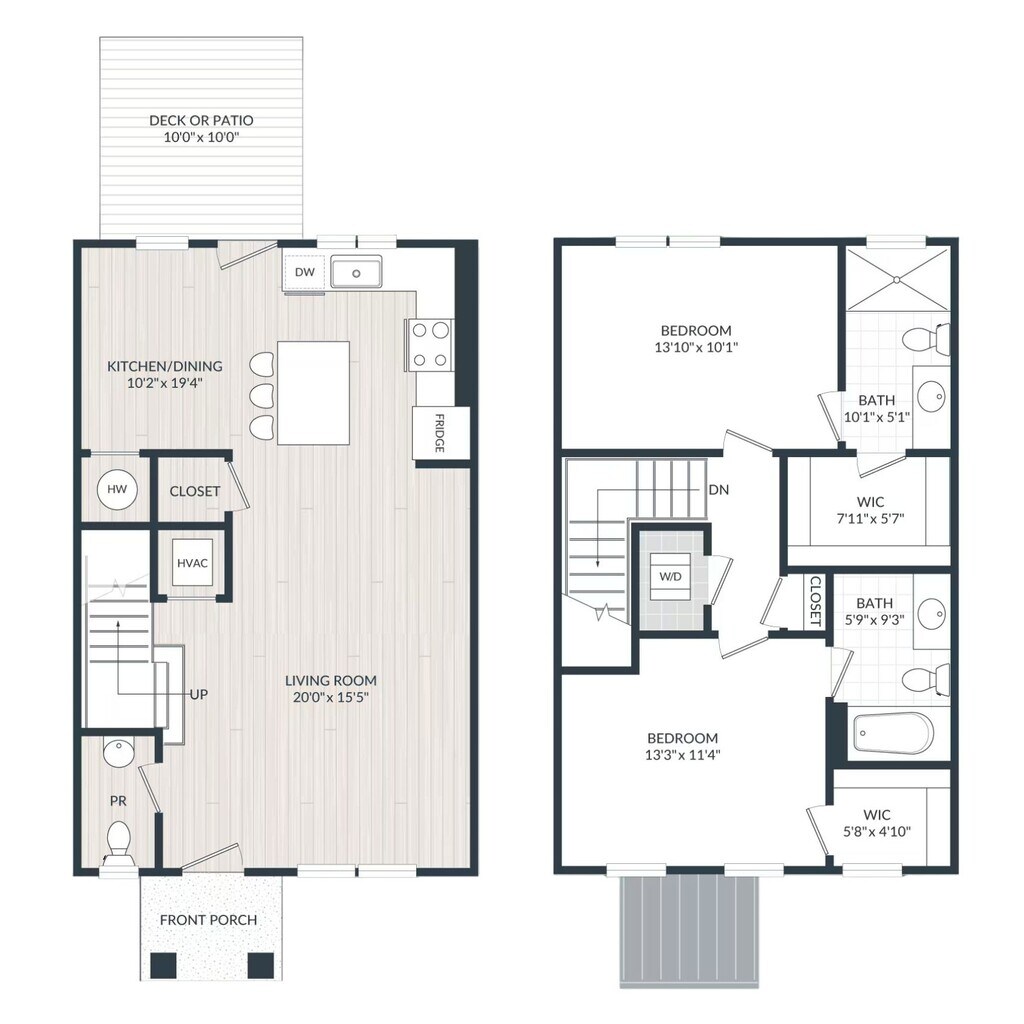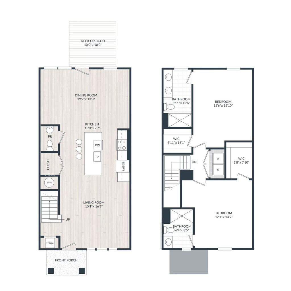 2 Beds, 2.5 Baths, 2085 sq ftAvailable NowLargest 2 BedroomThis is the largest 2 Bedroom at this PropertyModel Gallery