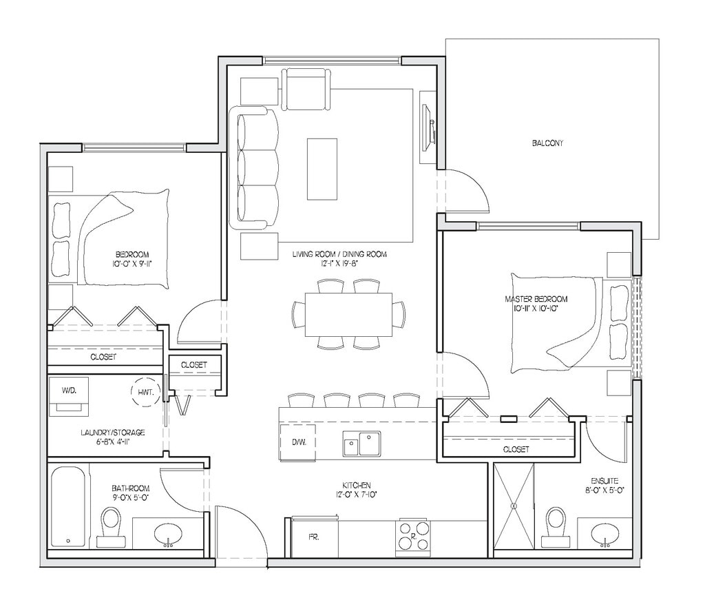 2 Bed 2 Bath 1825 D - Floorplan 1 2 Bed 2 Bath 1820 C