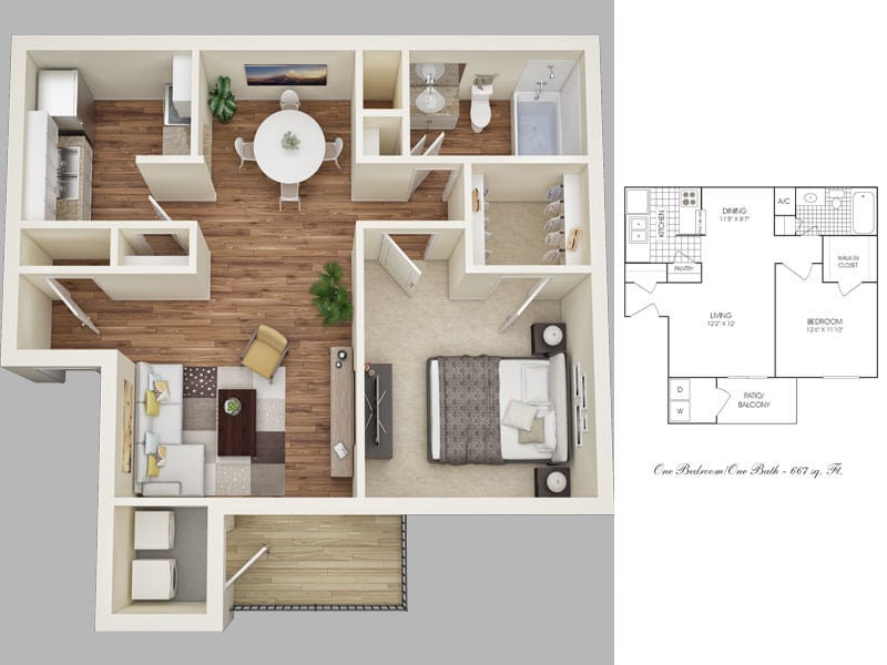 1 Bed, 1 Bath, 667 sq ftAvailable NowModel Gallery
