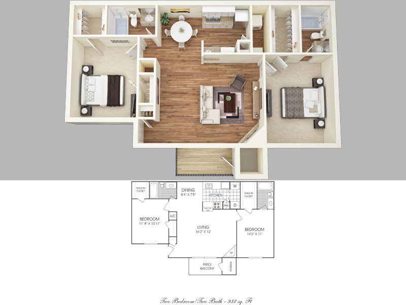 2 Beds, 2 Baths, 932 sq ftAvailable NowModel Gallery