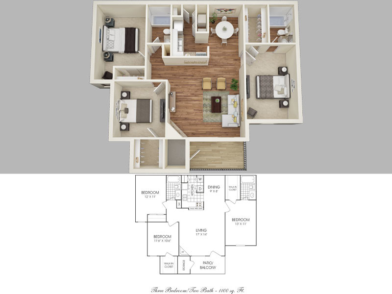 3 Beds, 2 Baths, 1100 sq ftAvailable NowModel Gallery