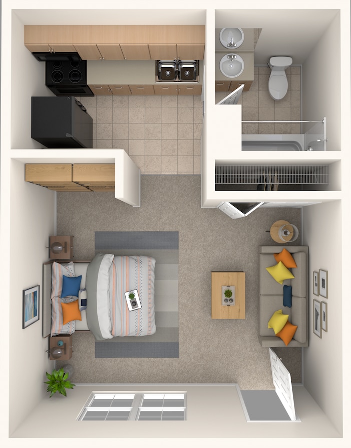 Studio, 1 Bath, 288 sq ftModel Gallery