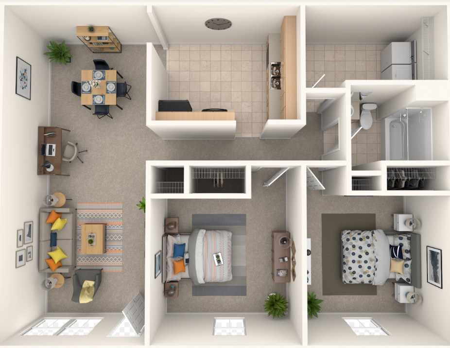 2 Beds, 1 Bath, 864 sq ftModel Gallery