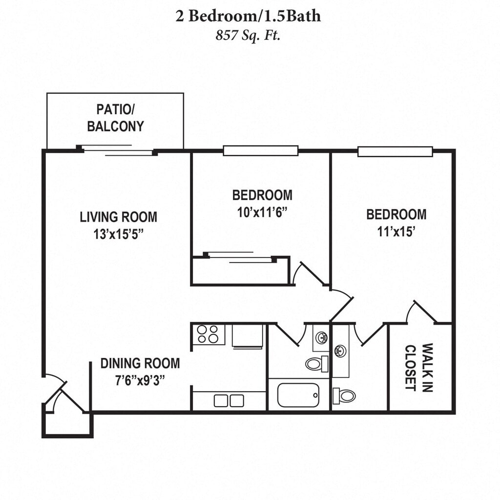 2 Bedrooms 1.5 Baths - 792SqFt - Floorplan 2 2 Bedrooms 1.5 Baths - 857SqFt