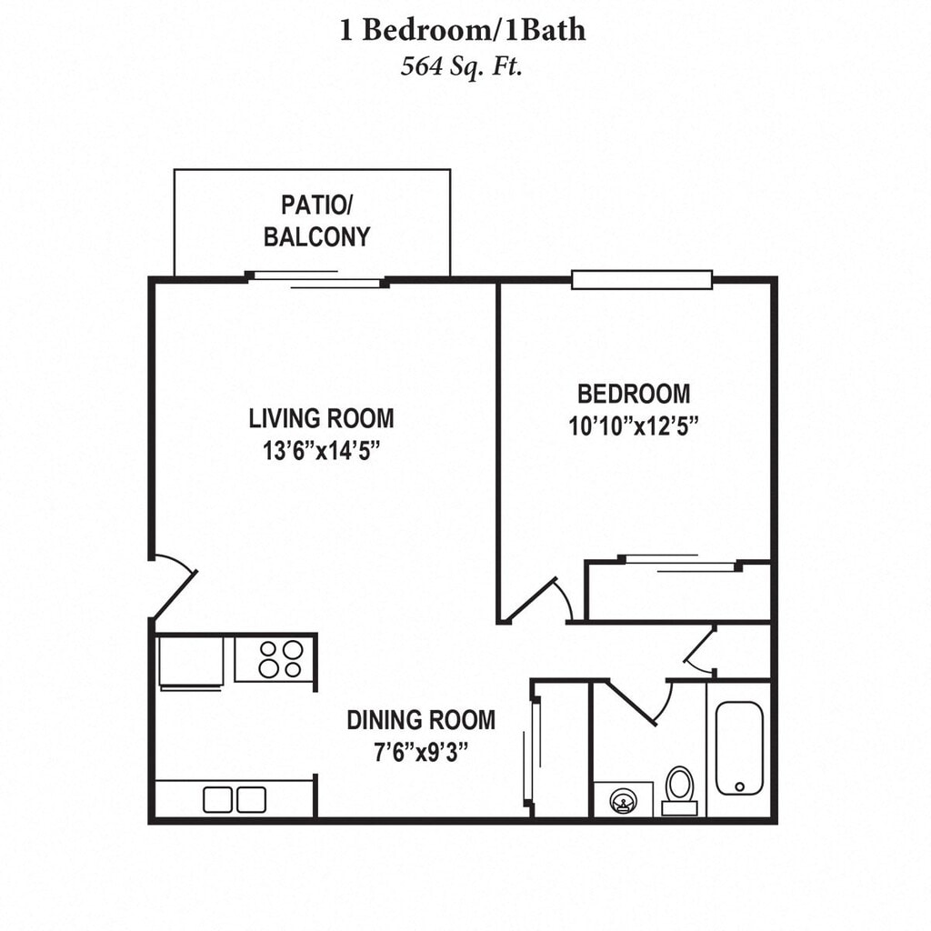 1 Bedroom 1 Bath - 560SqFt - Floorplan 2 1 Bedroom 1 Bath - 564SqFt