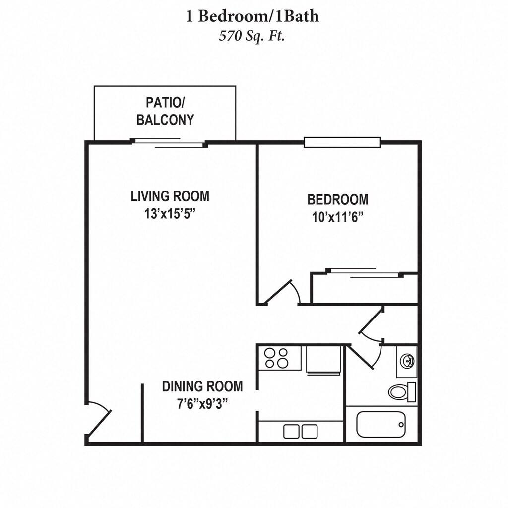 1 Bedroom 1 Bath - 570SqFt - Floorplan 1 ![]()