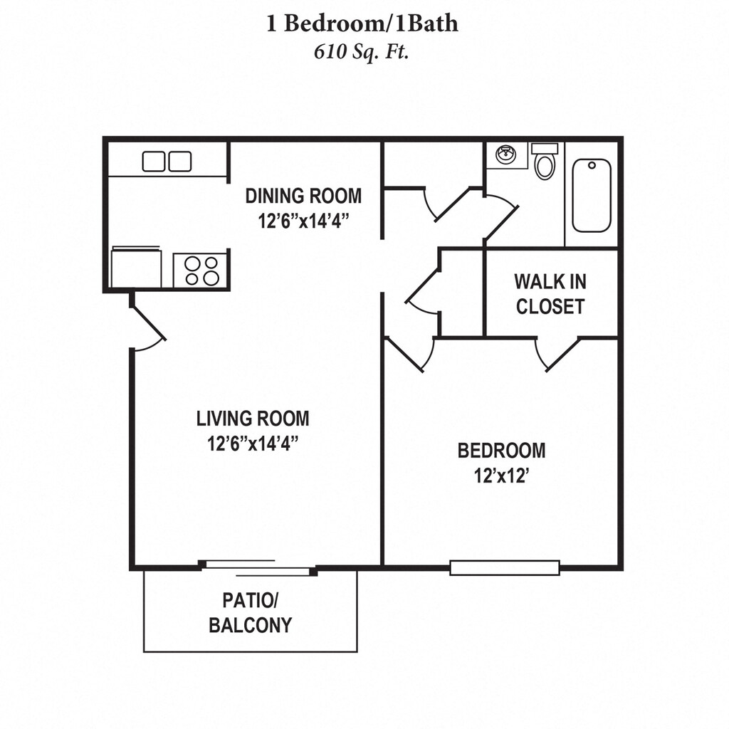 1 Bedroom 1 Bath - 610SqFt - Floorplan 1 ![]()