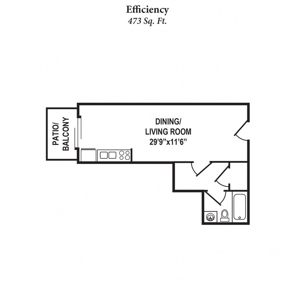 Efficiency - Floorplan 2 1 Bedroom 1 Bath - 560SqFt
