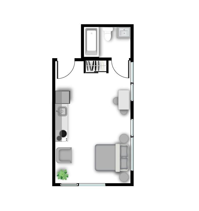 Apartment Model: Efficiency StudioStudio, 1 Bath, 289-352 sq ftUnavailableEfficiency Studio - Floorplan 1 Efficiency Studio + Loft