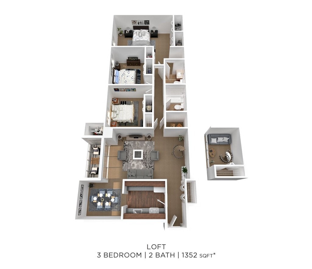One Bedroom Loft - 854 sqft - Floorplan 1 Apartment Unit: 912Apartment Model: One Bedroom Loft - 854 sqft$1,4351 Bedroom, 1 Bath, 854 sq ftAvailable February 3, 20262 Bedrooms
