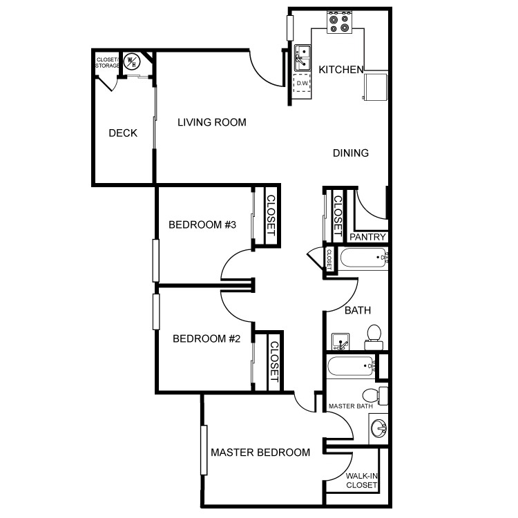 2 Bed 2 Bath - Floorplan 1 3 Bedrooms
