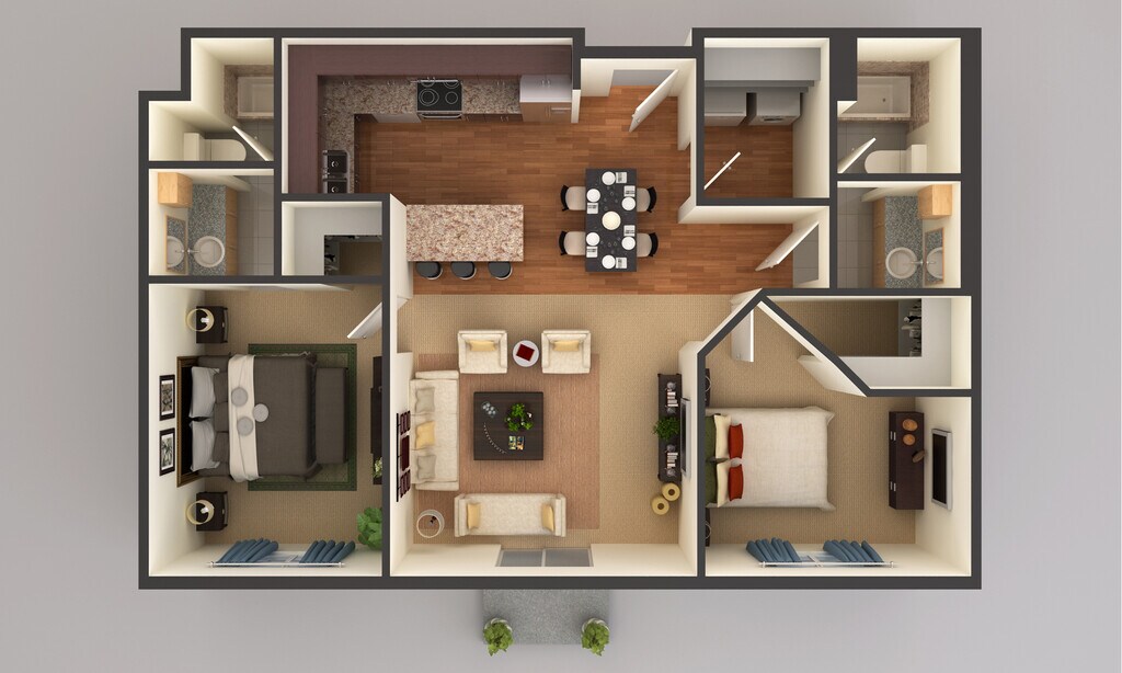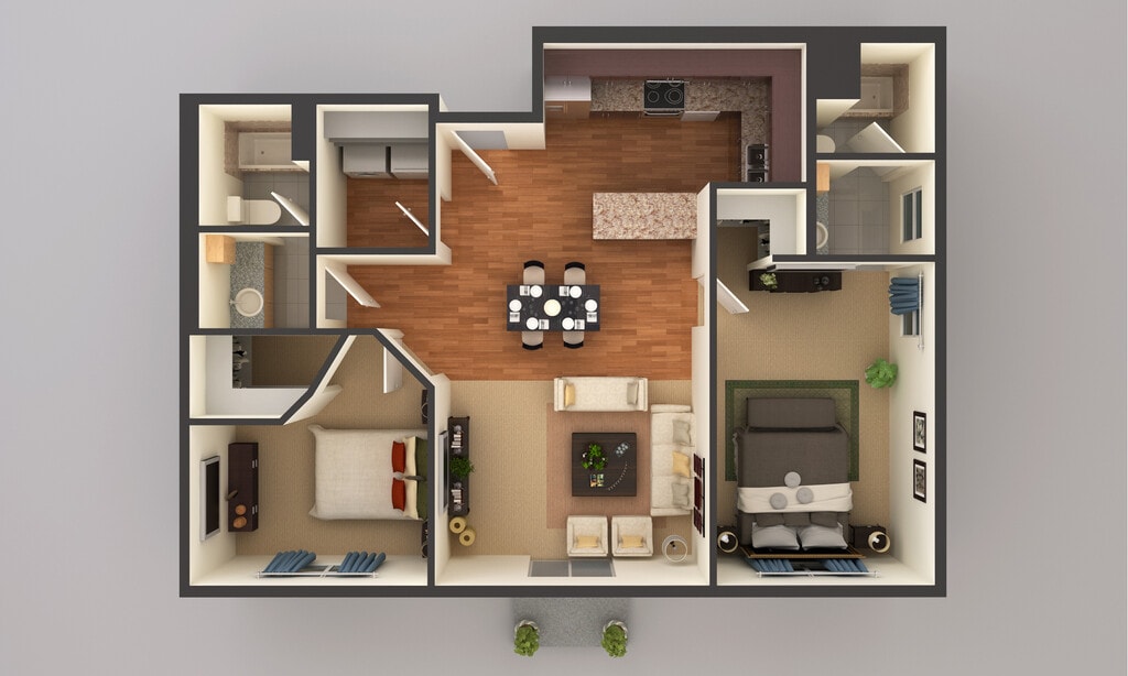2 Beds, 2 Baths, 1045 sq ftPlus FeesAvailable NowModel Gallery