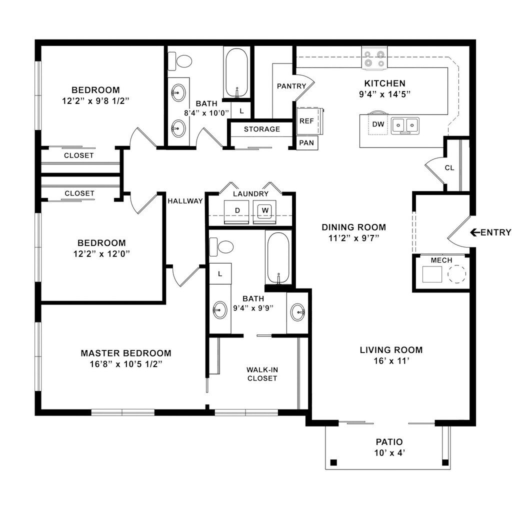 Apartment Model: A3From $1,5951 Bedroom, 1 Bath, 692 sq ftAvailable Now![]()