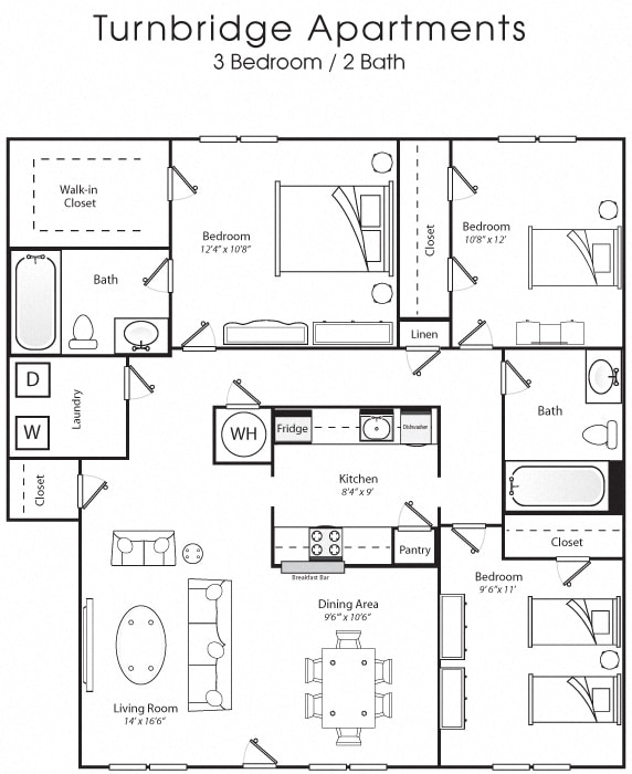 Apartment Model: 3 Bed 2 BathFrom $1,3003 Bedroom, 2 Bath, 1156 sq ftAvailable Now![]()
