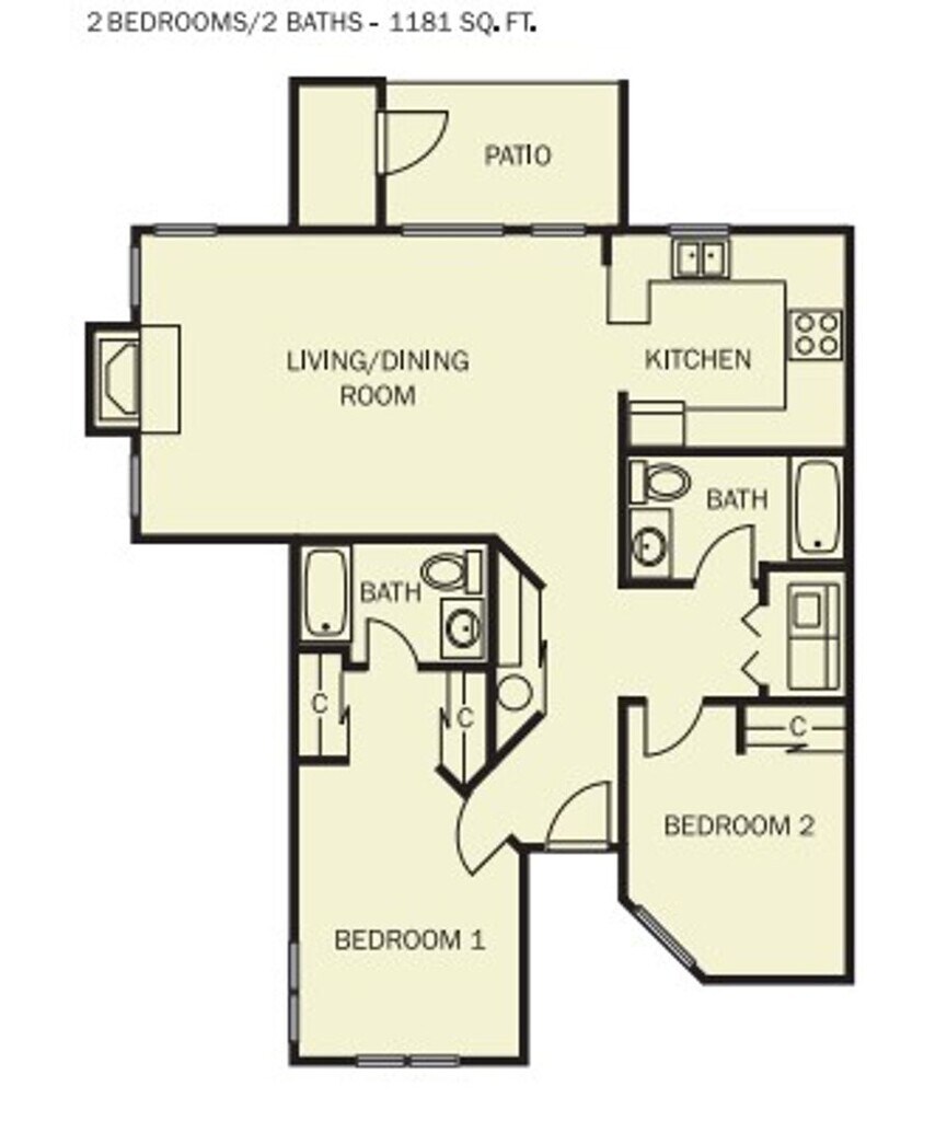 2 Beds, 1 Bath, 1010 sq ftAvailability Details