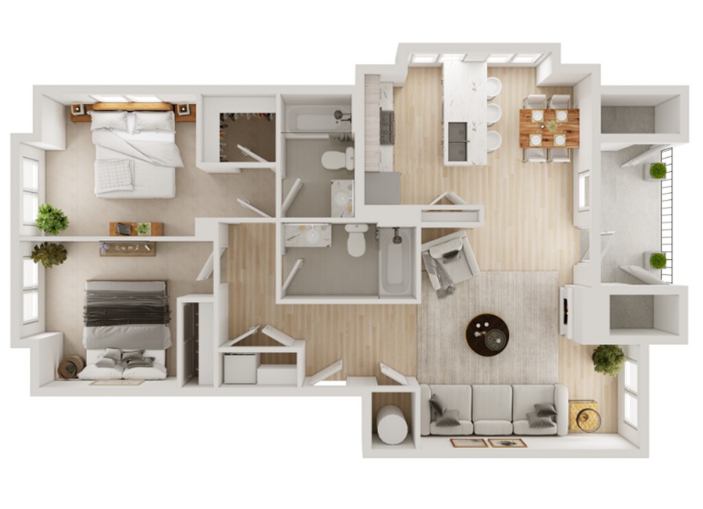 2 Beds, 2 Baths, 969 sq ftAvailable NowModel Gallery