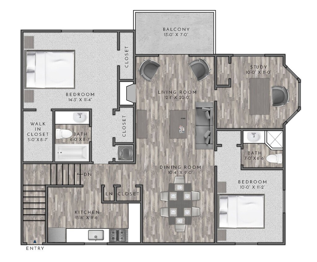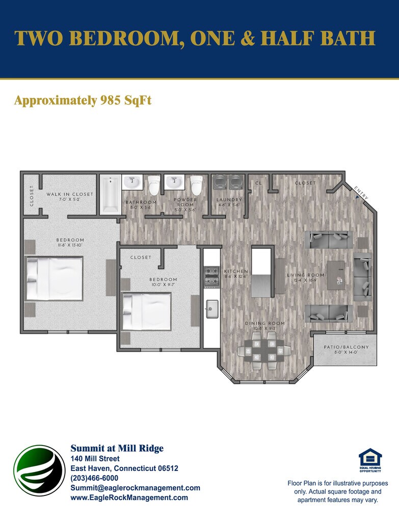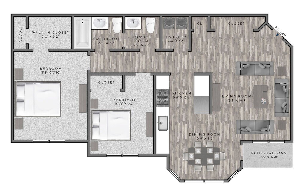 1 Bed, 1.5 Baths, 873 sq ftModel Gallery