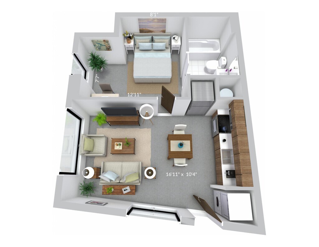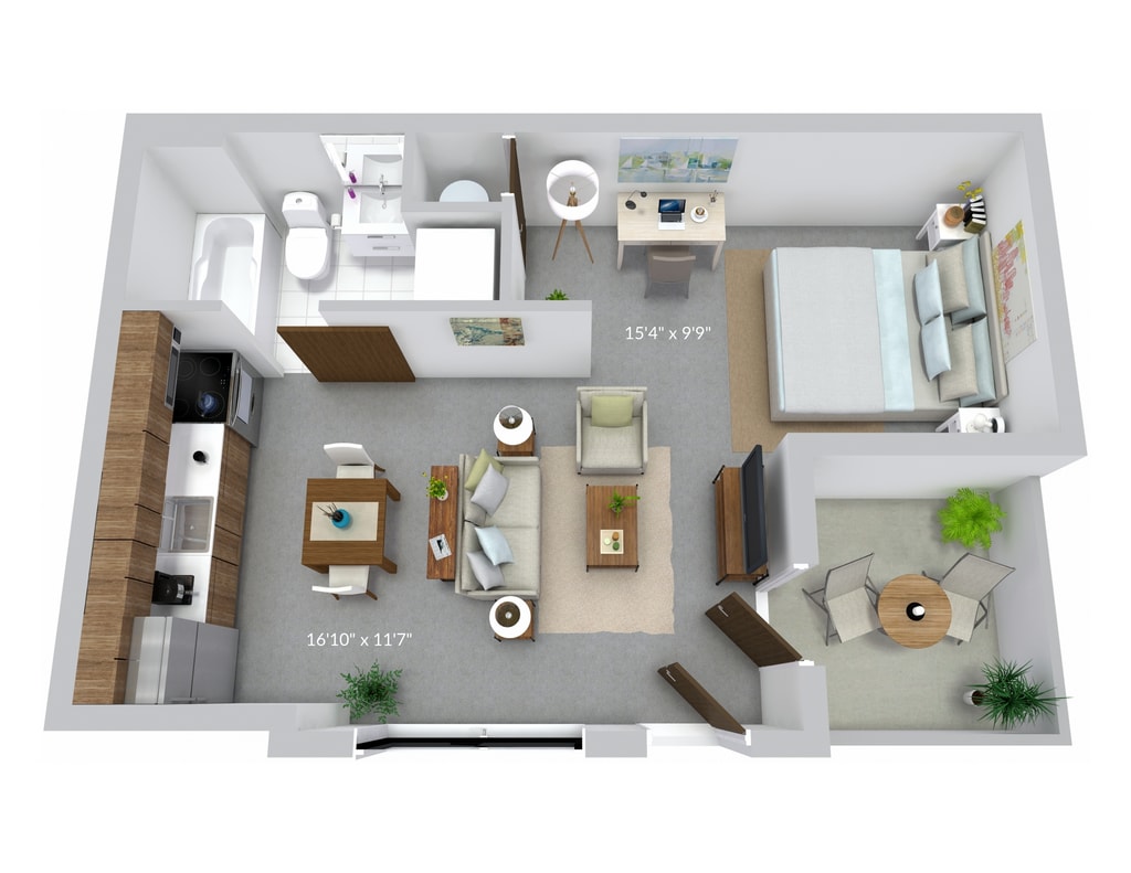 1 Bed, 1 Bath, 460 sq ftModel Gallery