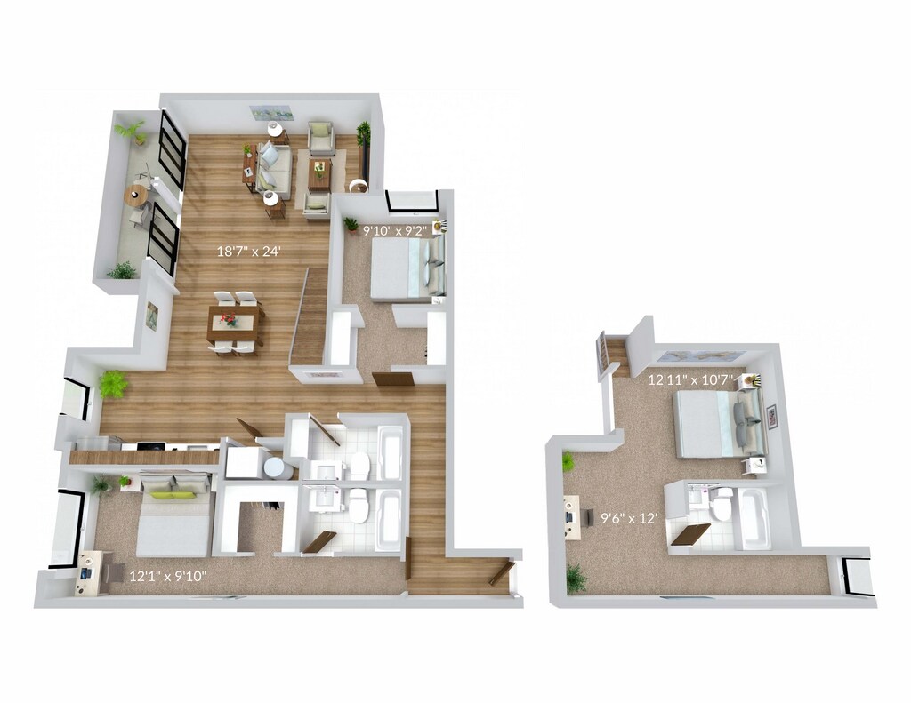 1 Bed, 1 Bath, 600 sq ftModel Gallery