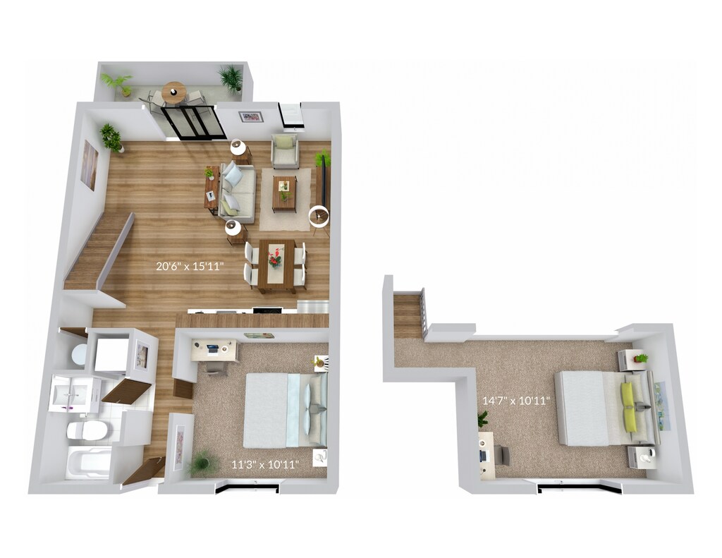 1 Bed, 1 Bath, 570 sq ftAvailable NowModel Gallery