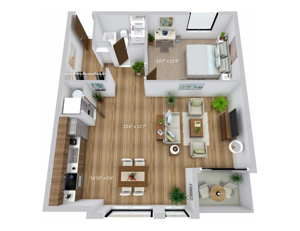 1 Bed, 1 Bath, 590 sq ftModel Gallery