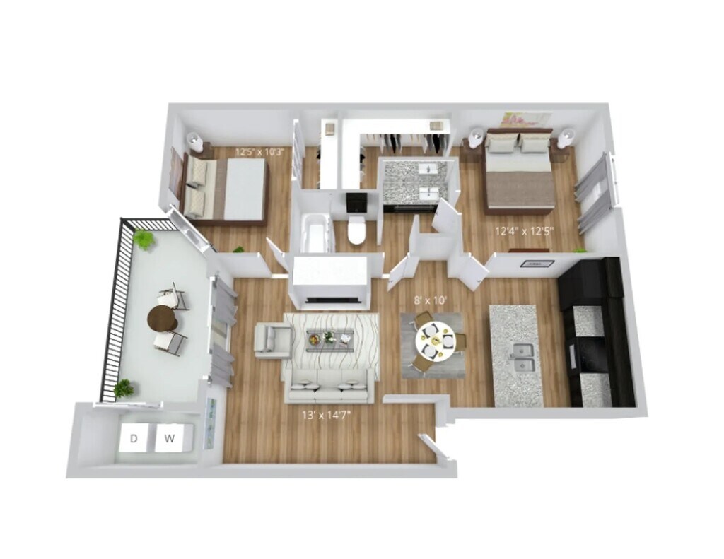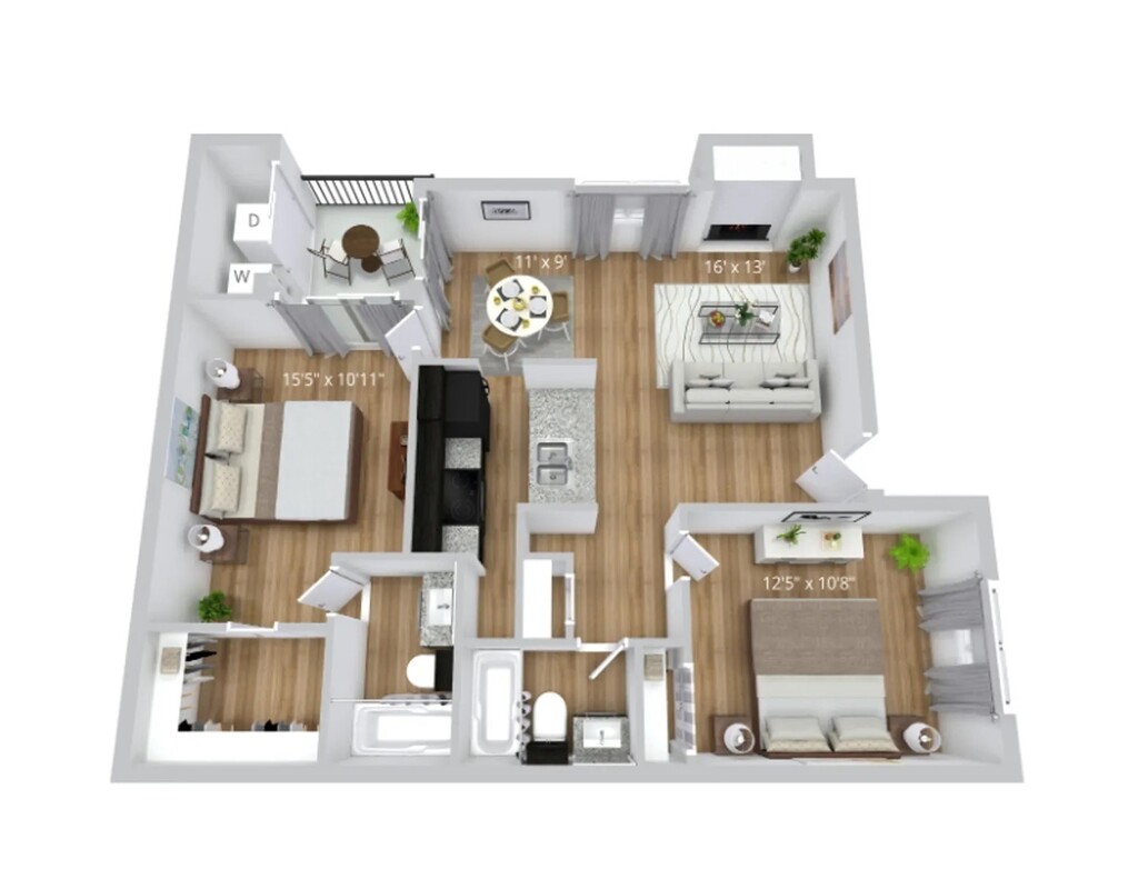 2 Beds, 2 Baths, 980 sq ftLargest 2 BedroomThis is the largest 2 Bedroom at this PropertyModel Gallery