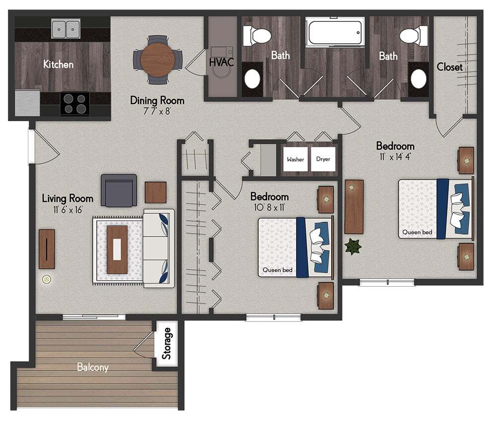 1 Bed, 1 Bath, 835 sq ftAvailable NowLargest 1 BedroomThis is the largest 1 Bedroom at this PropertyModel Gallery