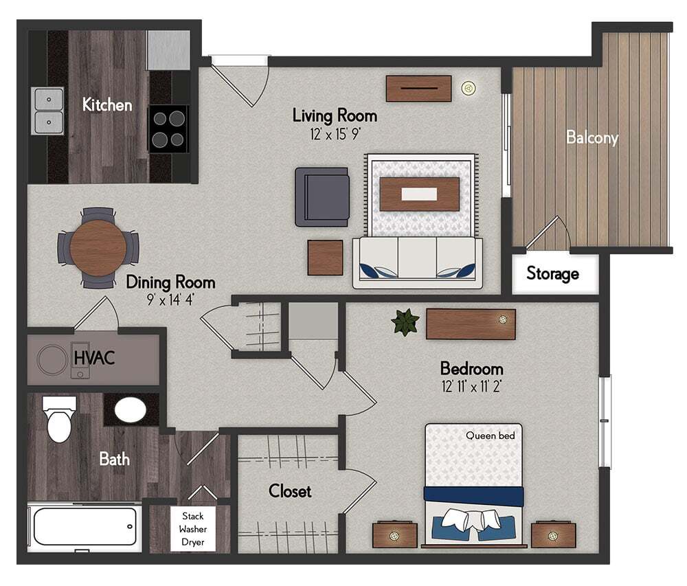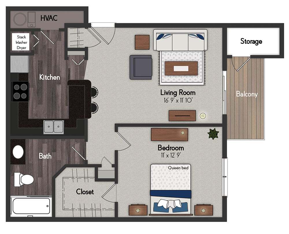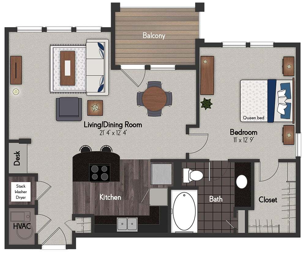 1 Bed, 1 Bath, 614 sq ftModel Gallery