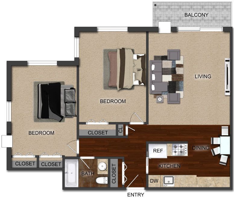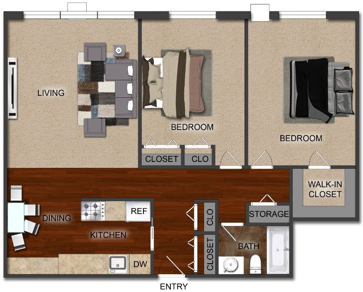 2 Beds, 1 Bath, 946 sq ftTotal Monthly PriceAvailable NowModel Gallery