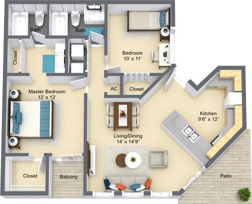 2 Beds, 2 Baths, 884 sq ftAvailable NowModel Gallery