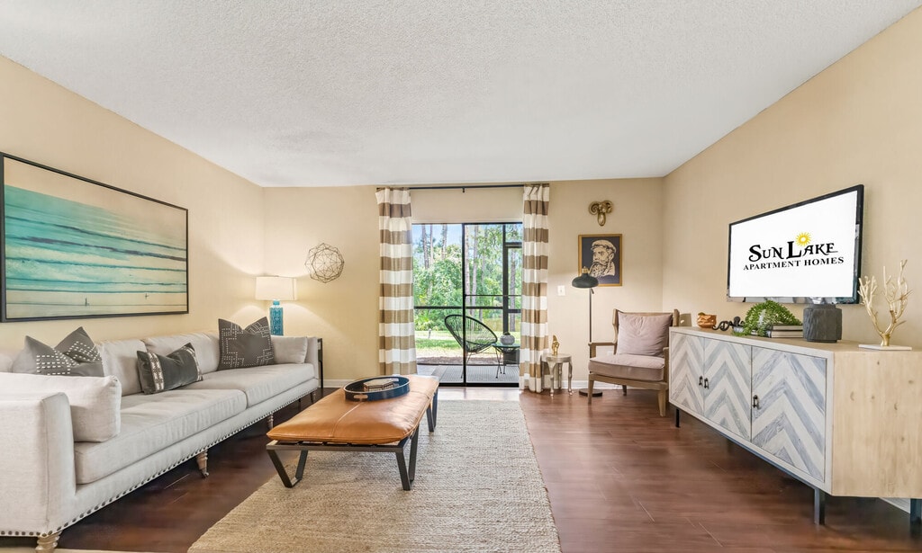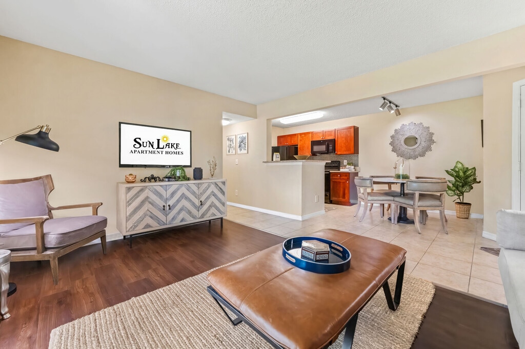 Sun Lake… Where warm, sunny days yield to peaceful tropical nights. Indulge your senses with resort-inspired amenities, and choose from 1-, 2-, and 3-bedroom apartment homes that reflect the rich textures of the habitat that surrounds them. Enjoy lavish amenities, our residents love having access to our state-of-the-art, expansive fitness center, spa-inspired pools, clubhouse, pet spa, and game room. To live at Sun Lake is to open up possibilities, to explore, to experience. Discover fun and friendship (and sometimes food trucks). Wake up early for a run, kayak to a nearby restaurant, fish on our stocked lake, or enjoy the tranquility of nature. Share home-cooked meals and happy hours with neighbors. Get on a bike and enjoy farmer's markets and neighborhood art shows. Call more than 29 acres of lush landscape, lakes, trees, and trails, your living room. At Sun Lake you are near a major city, yet you’re in a green oasis. You’re close to the people you want to be with, both in spirit and geography. Sun Lake Apartments, located in Lake Mary, Florida, is 25 minutes from Orlando. Located just five minutes from I-4, 15 minutes from Sanford, and 40 minutes from Orlando International Airport.