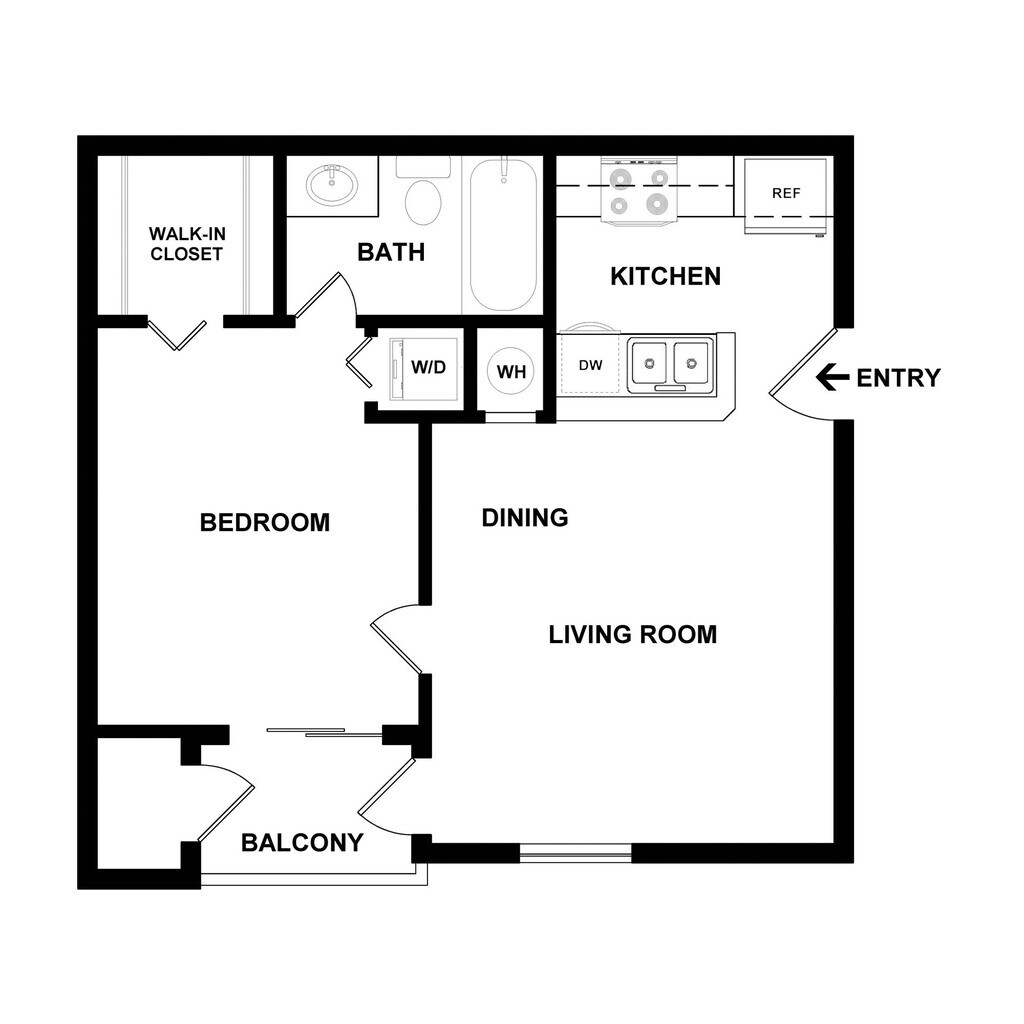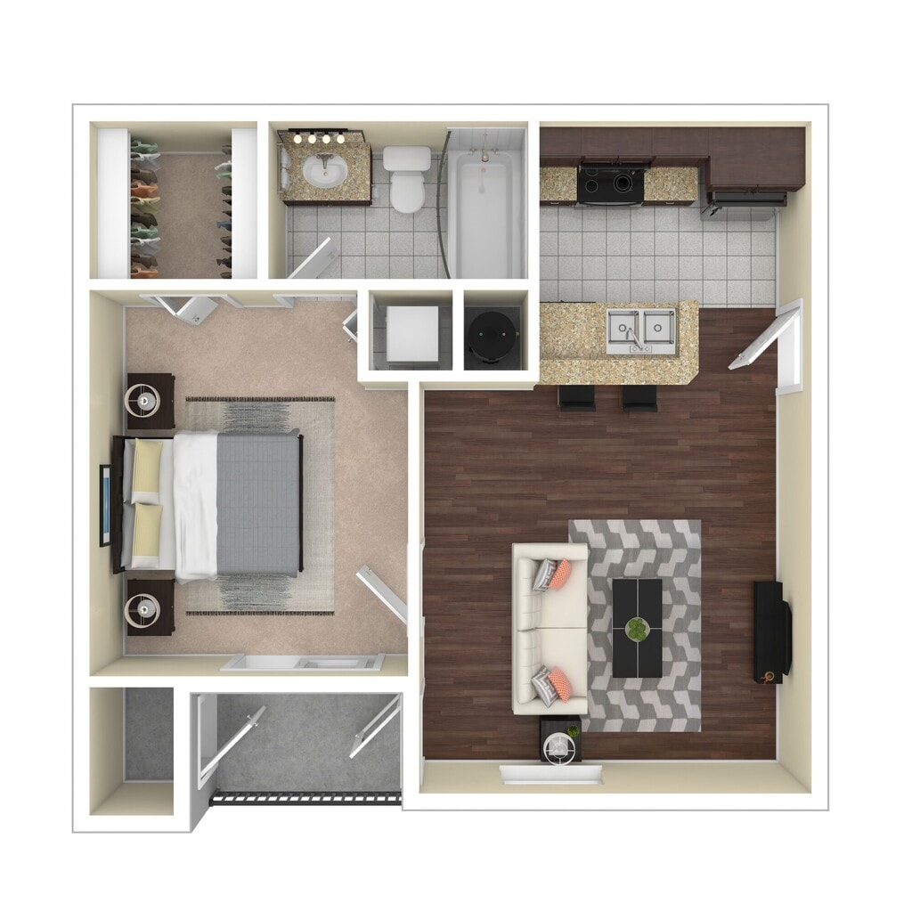 1 Bed, 1 Bath, 615 sq ftAvailable NowModel Gallery