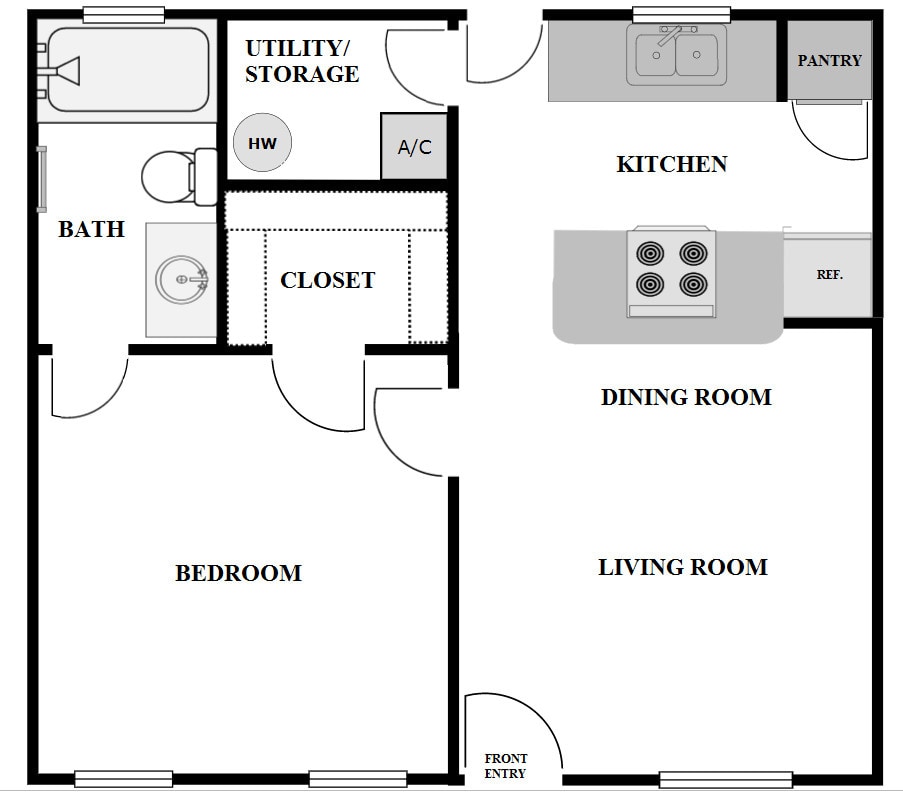1 Bedroom x 1 Bath-Income Restrictions Apply - Floorplan 1 2 Bedrooms