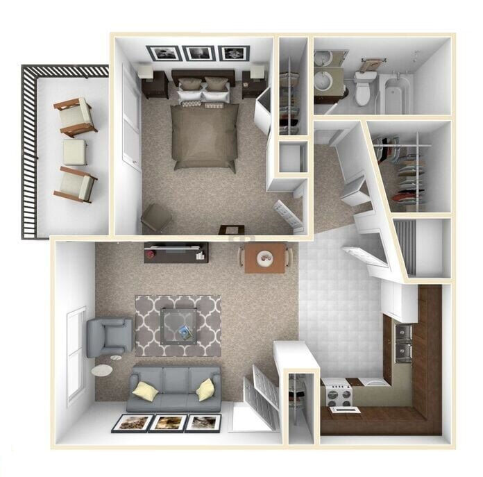 1 Bed, 1 Bath, 660 sq ftModel Gallery