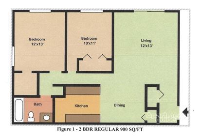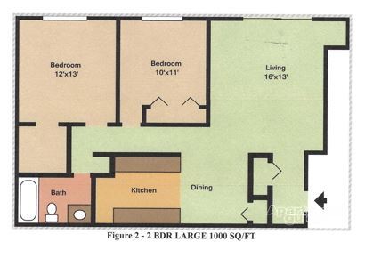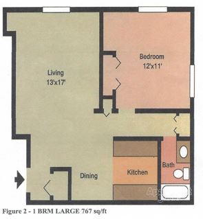 2 Bedroom/1 Bathroom - Floorplan 1 ![]()