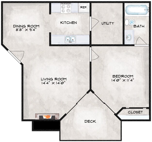 1 Bed, 1 Bath, 714 sq ftAvailable NowModel Gallery