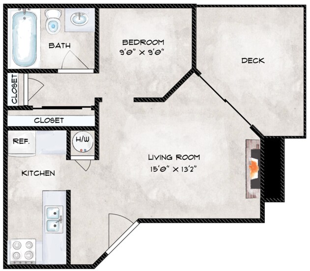 Apartment Model: Jr 1x1From $9051 Bedroom, 1 Bath, 546 sq ftAvailable Now![]()
