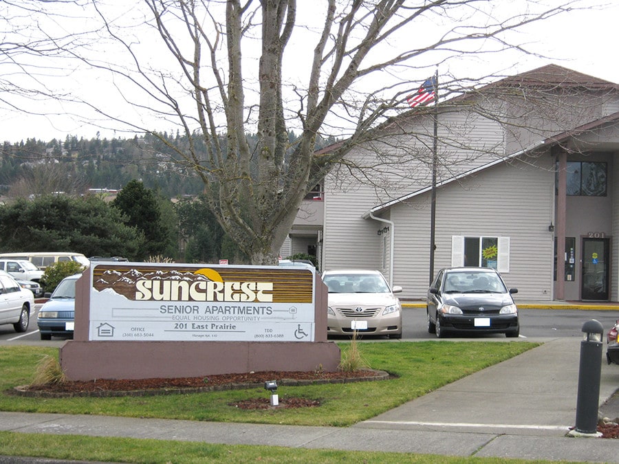 CALL TO JOIN OUR WAIT LIST. Suncrest Senior Apartments is a beautiful, affordable senior living community located in scenic Sequim, WA. Our community is conveniently located a short distance from shopping, dining, Carrie Blake Park, and North Olympic Library. Take a walk on our beautifully landscaped grounds, or stroll over to the nearby senior center for even more socializing and activities. Your beautiful apartment home is ready for your arrival and features a balcony for your enjoyment. Visit us today and tour your new home at Suncrest - we can't wait to welcome you home! Income restrictions apply.