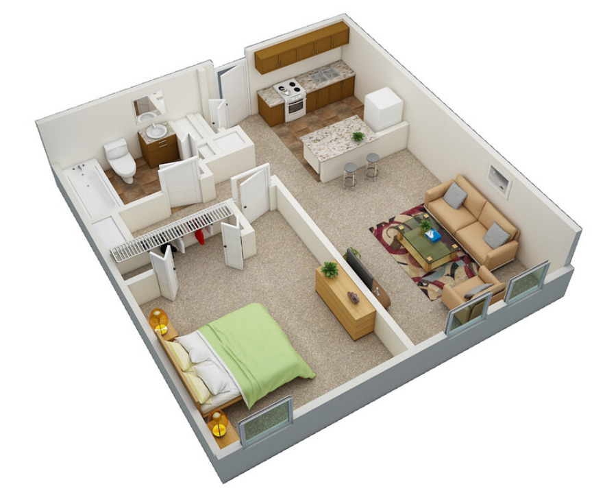 1 Bed, 1 Bath, 560 sq ftModel Gallery