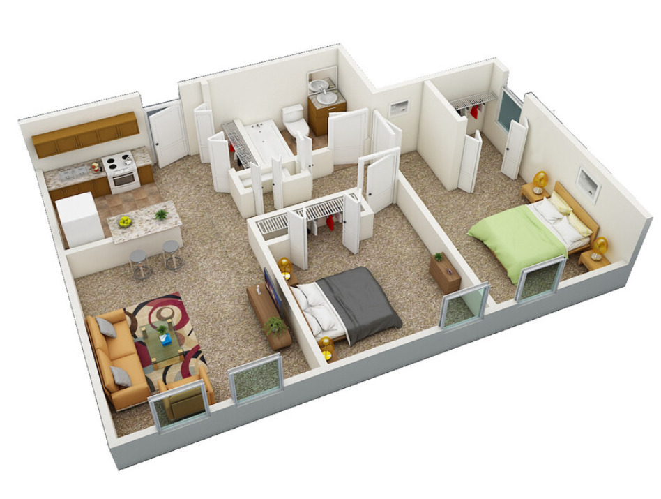 2 Beds, 1 Bath, 760 sq ftModel Gallery