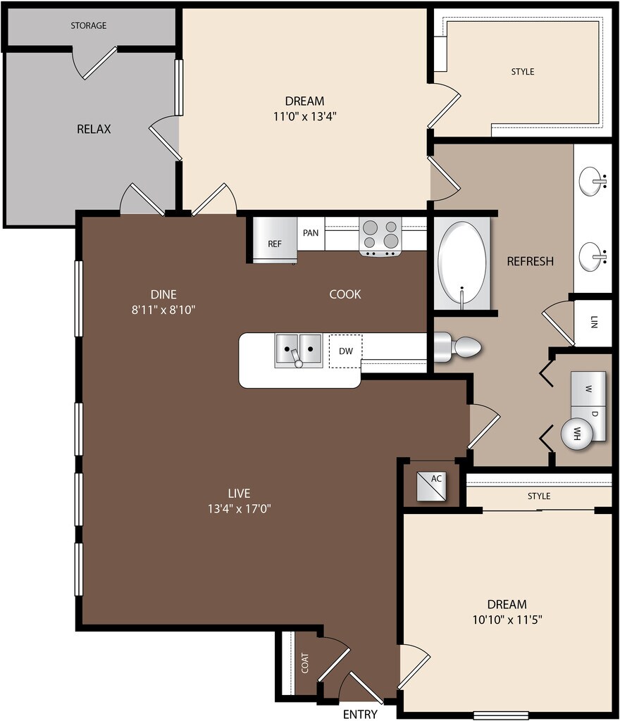 2 Beds, 2 Baths, 1173 sq ftAvailable NowModel Gallery