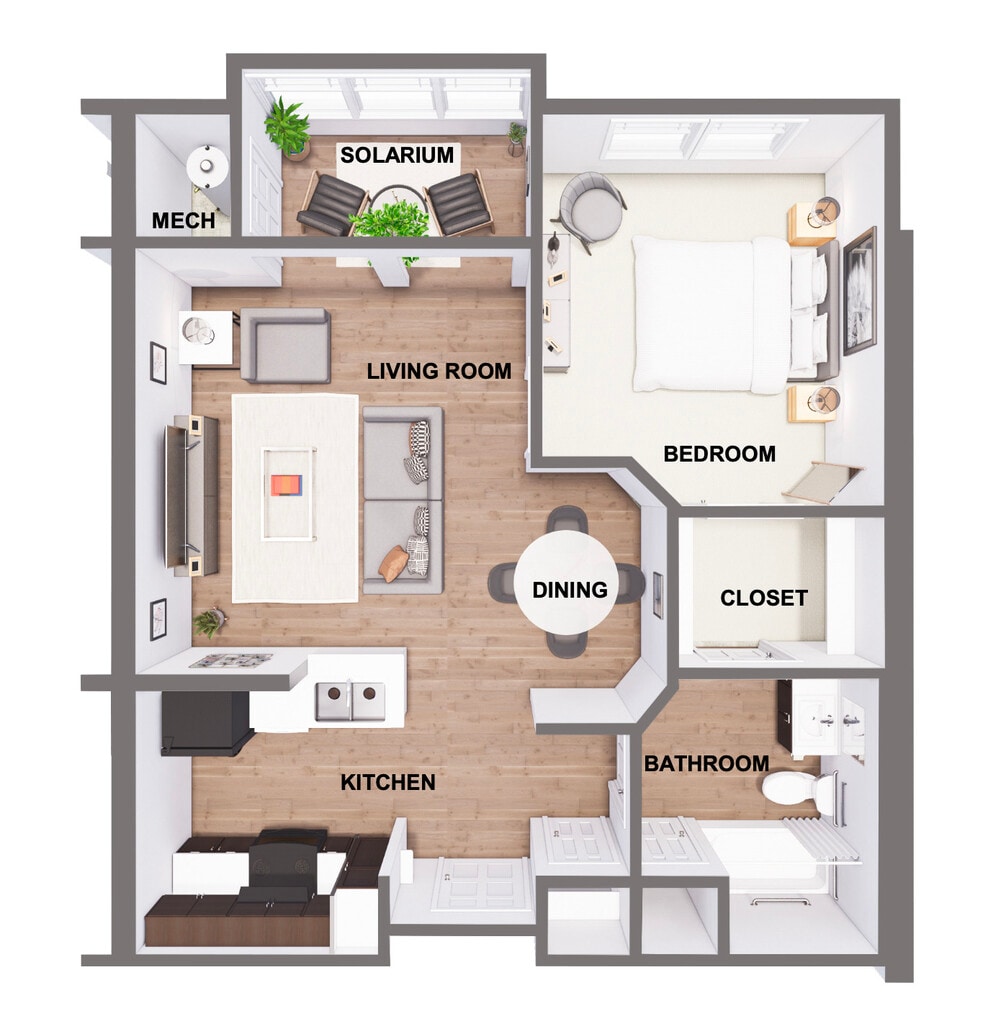1 Bed, 1 Bath, 735 sq ftAvailable NowModel Gallery