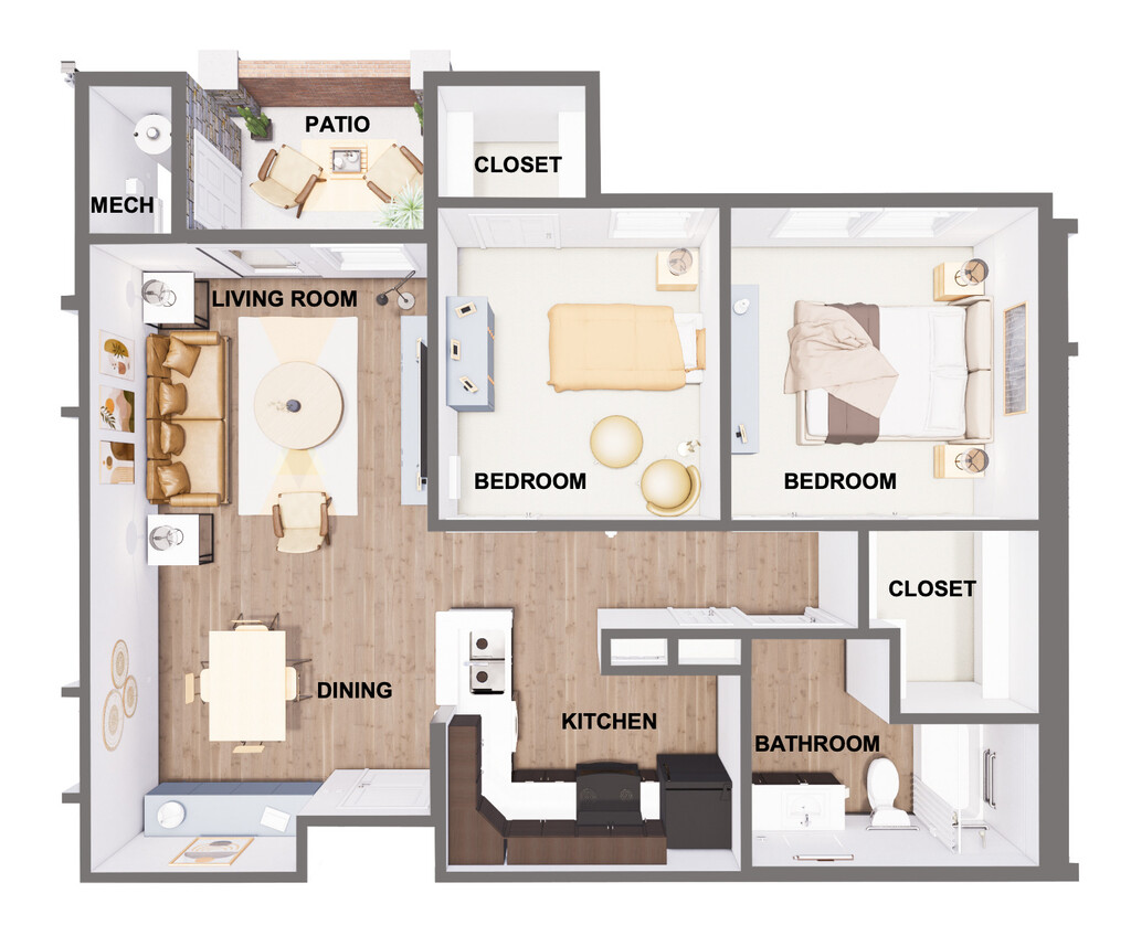 2 Beds, 1 Bath, 834 sq ftAvailable NowModel Gallery