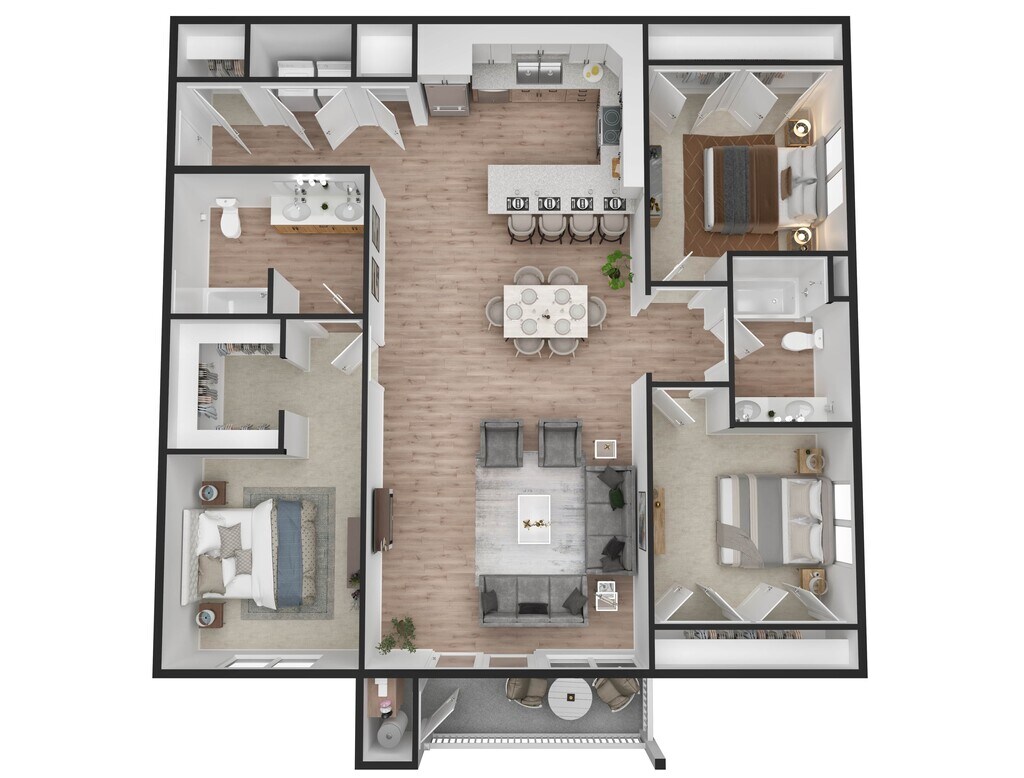 Apartment Model: Model E$2,5753 Bedroom, 2 Bath, up to 1406 sq ftAvailable Now![]()