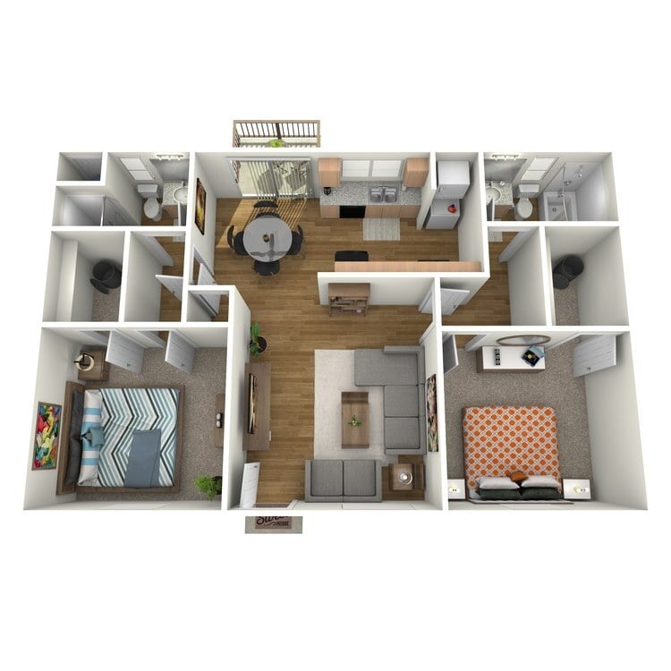 Apartment Model: Plan DFrom $1,3002 Bedroom, 2 Bath, 912 sq ftAvailable Now![]()