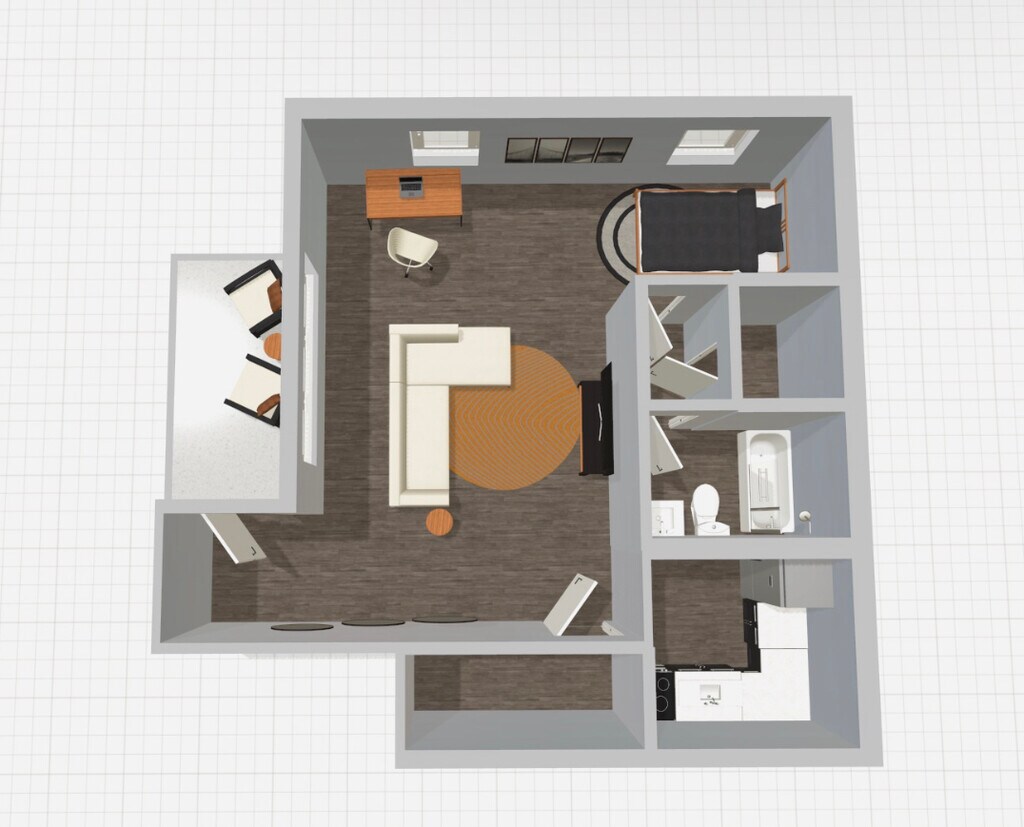 Studio, 1 Bath - Floorplan 1 Apartment Unit: O - 08Apartment Model: Studio, 1 Bath$1,715Studio, 1 Bath, 564 sq ftAvailable January 7, 20261 Bedroom
