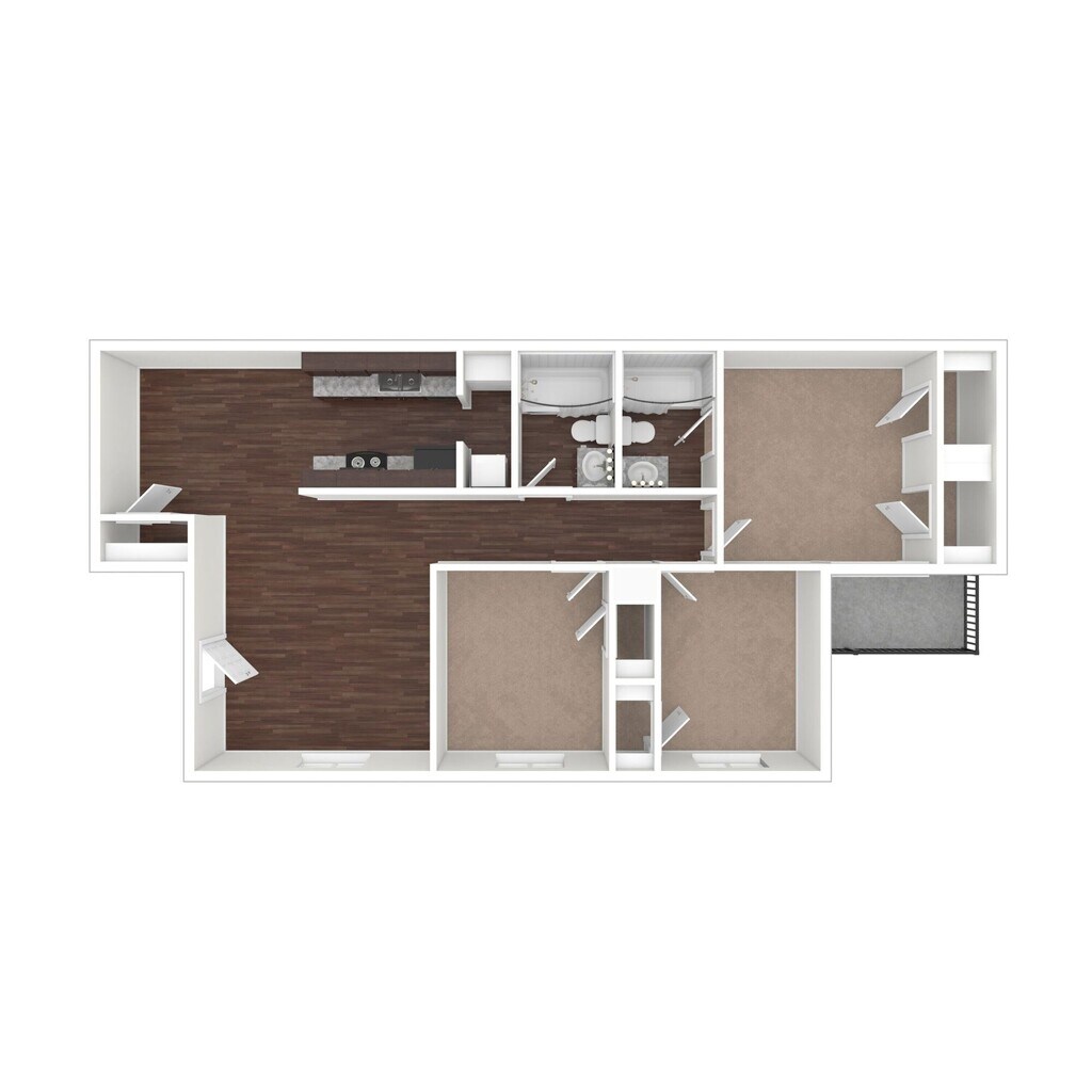 3 Beds, 2 Baths, 1036 sq ftAvailable NowModel Gallery