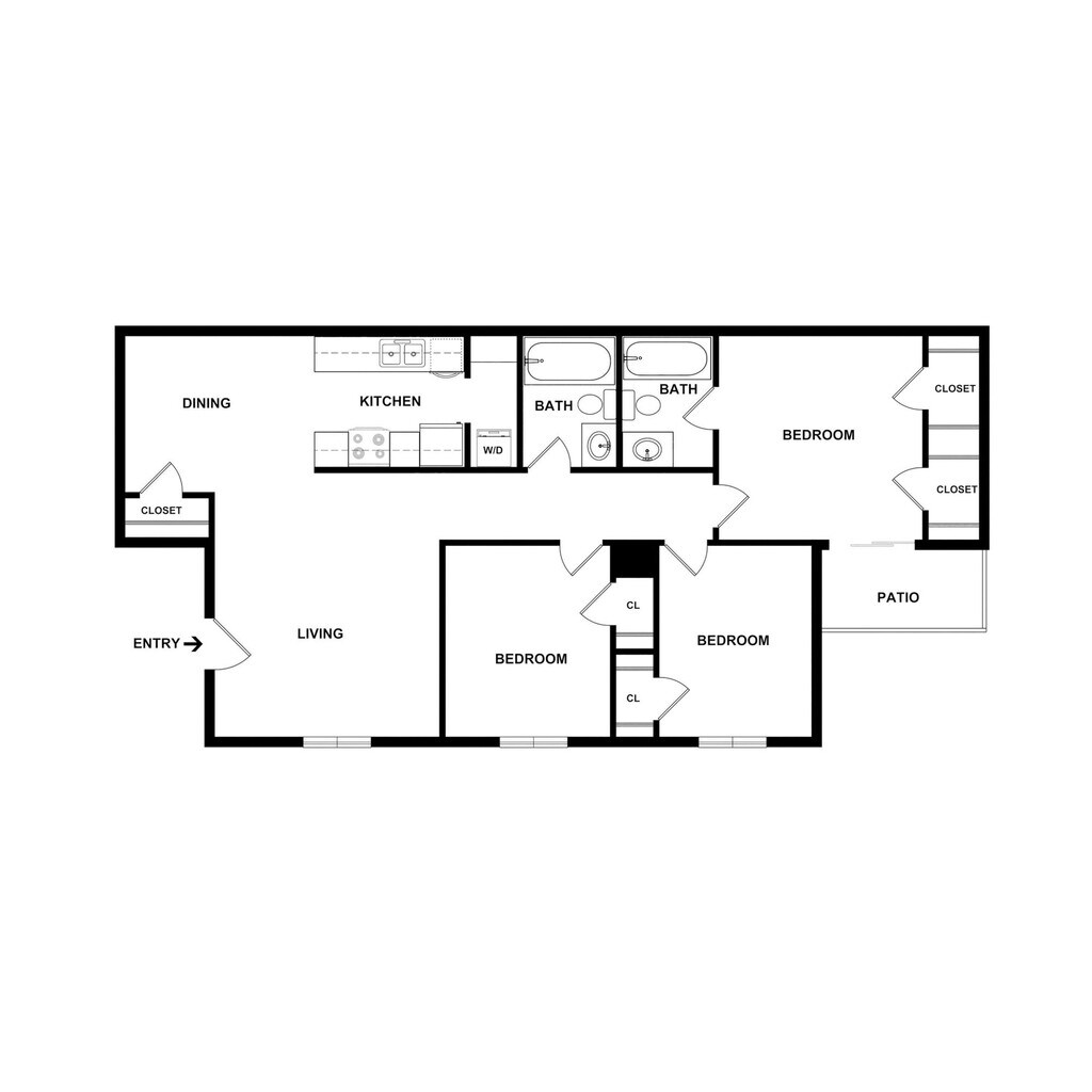 B1-U - Floorplan 4 Apartment Unit: 1204Apartment Model: B1-U$8272 Bedroom, 2 Bath, 889 sq ftAvailable Now3 Bedrooms