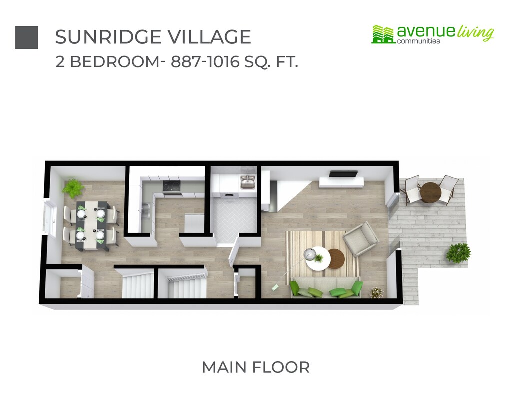 2 Beds, 1 Bath, 887-994 sq ftAvailable NowModel Gallery