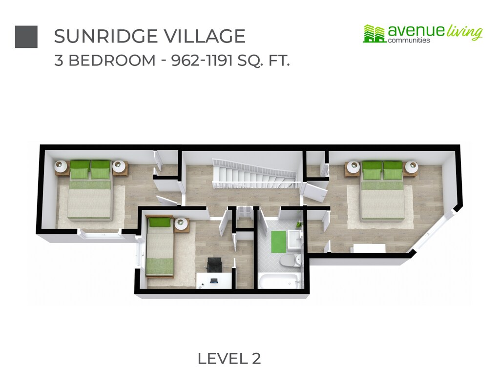 3 Beds, 1 Bath, 962-989 sq ftAvailable NowModel Gallery